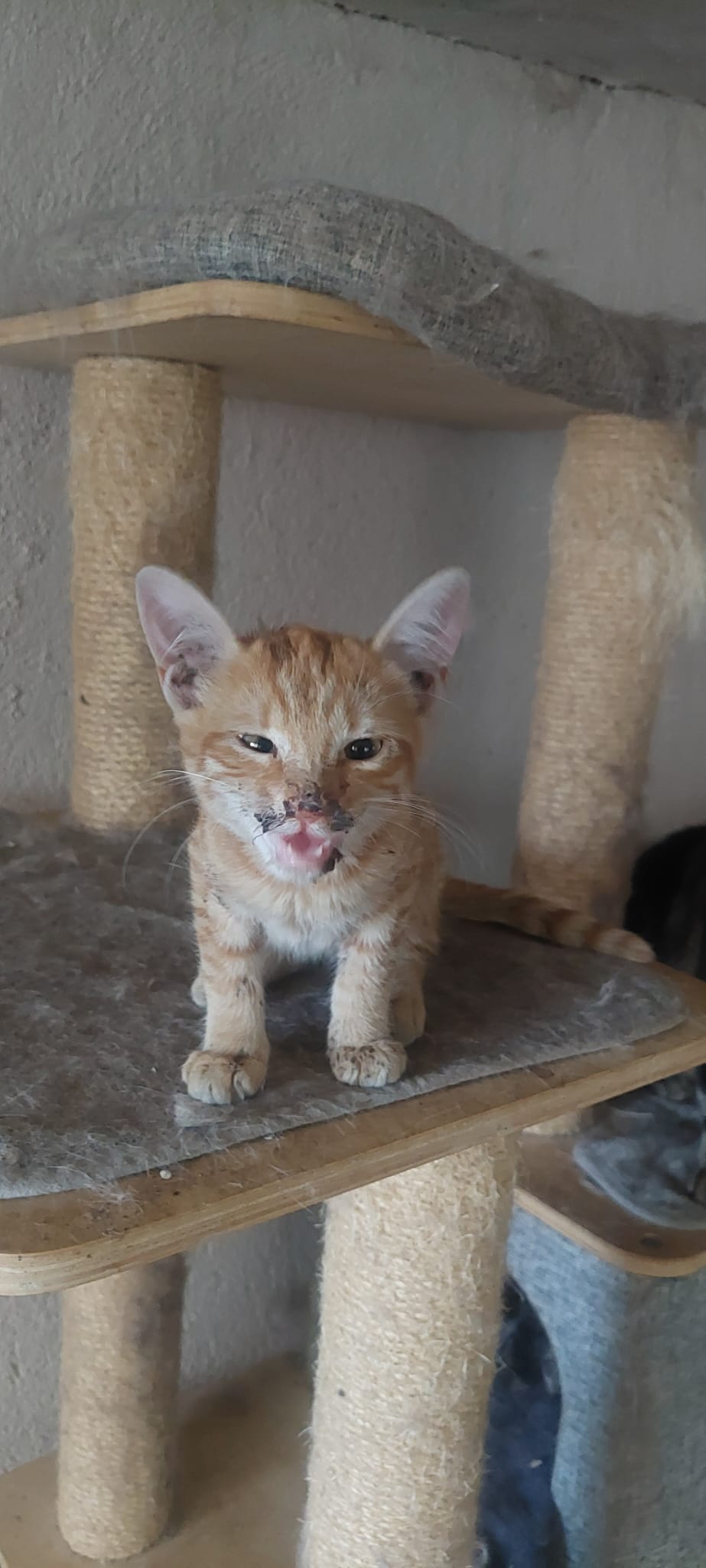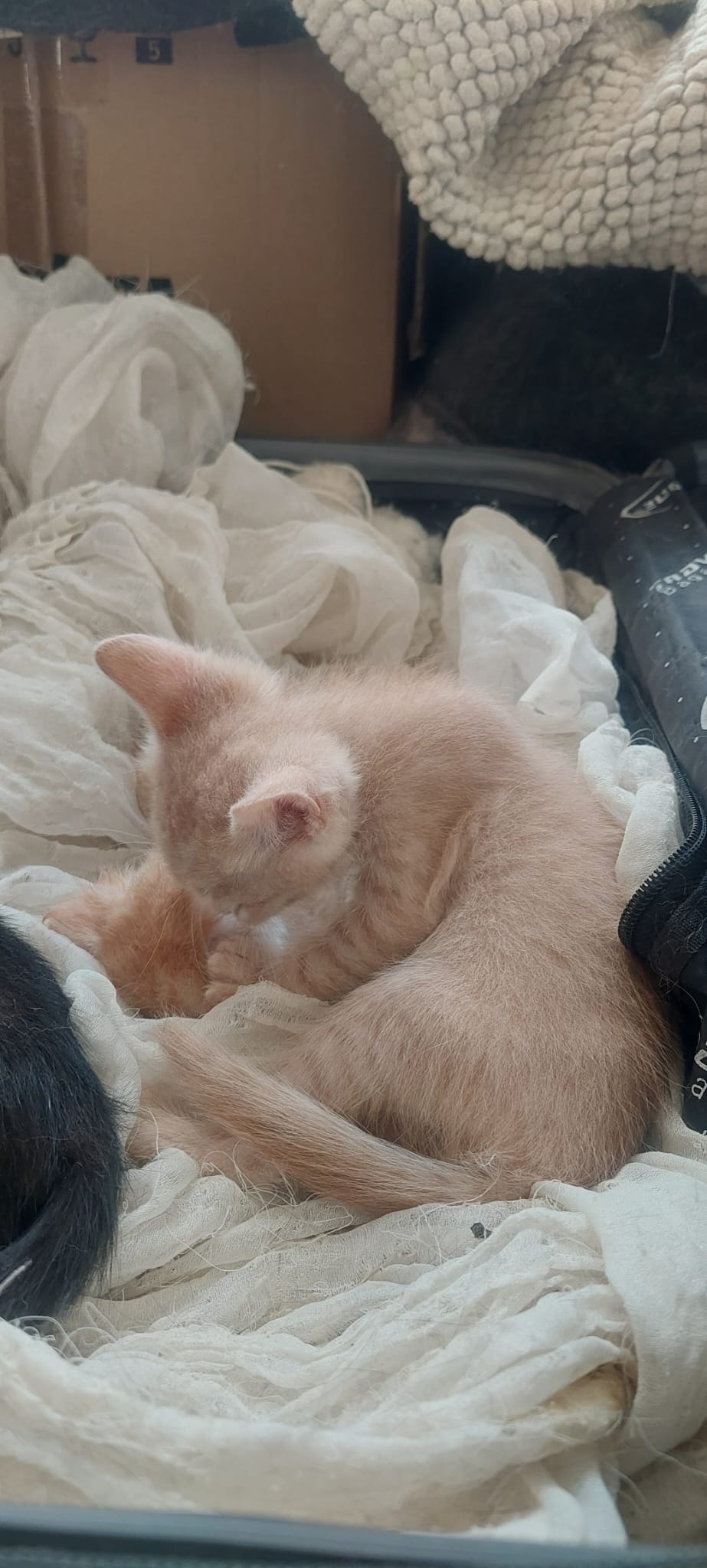 01.10.23: dieses Baby hat Pepa mit noch geschlossenen Augen im Müll gefunden. Zum Glück hat eine der Dorfkatzen auch Junge und sie hat das Kleine als ihr eigenes angenommen. Tolle Mama!