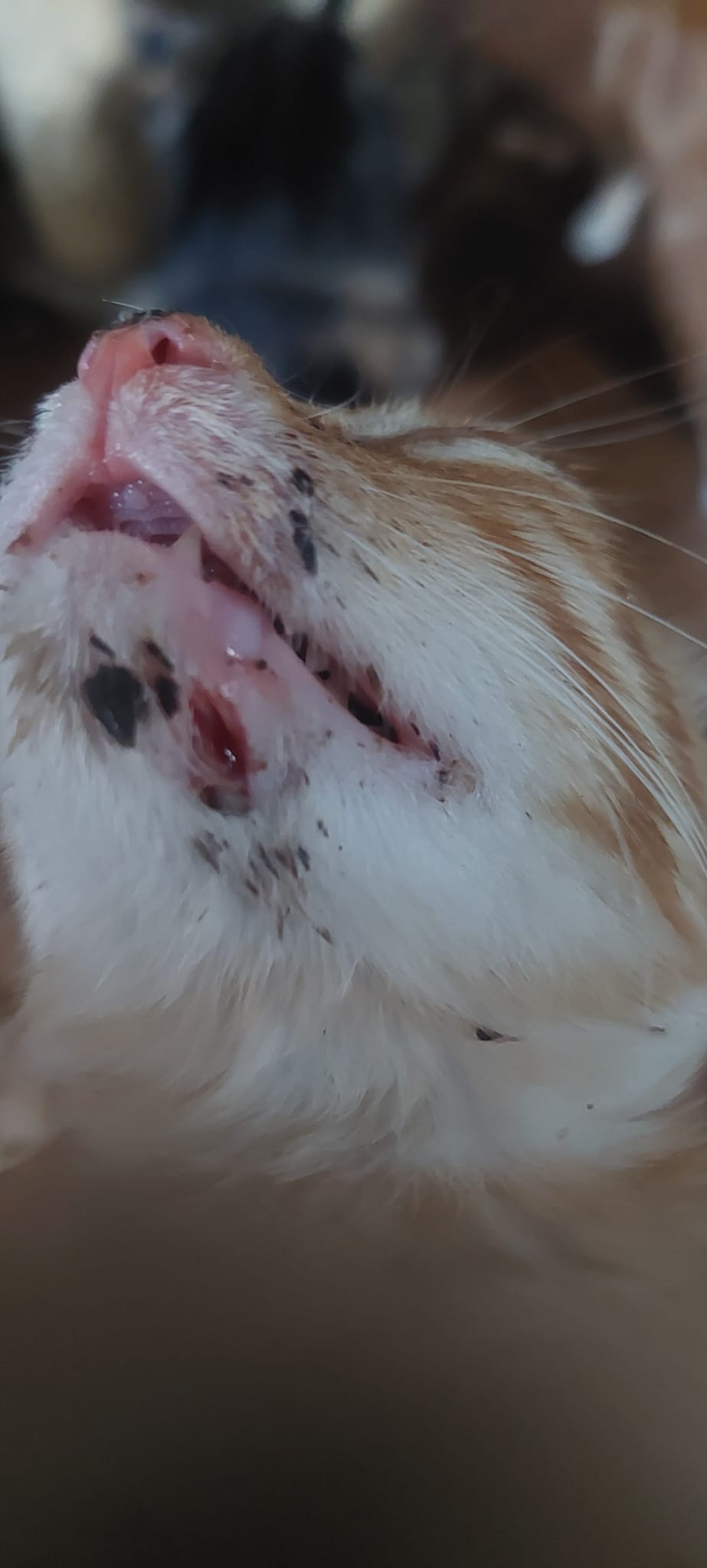 Das Kleine hat einen Abszess unter dem Kinn, sie behandelt es jetzt mit AB und einem Mittel gegen den Abszess. Hoffen wir dass das hilft.