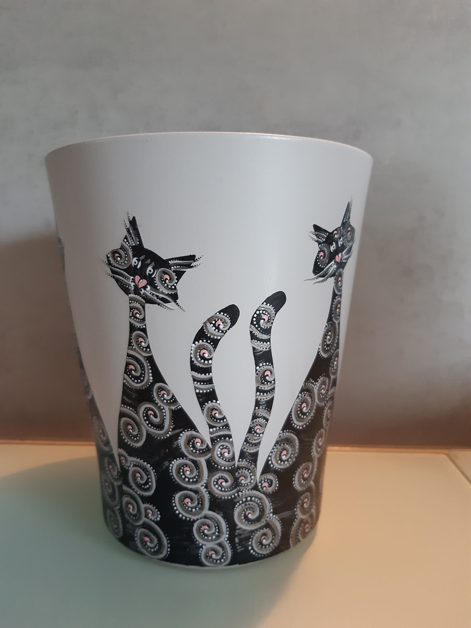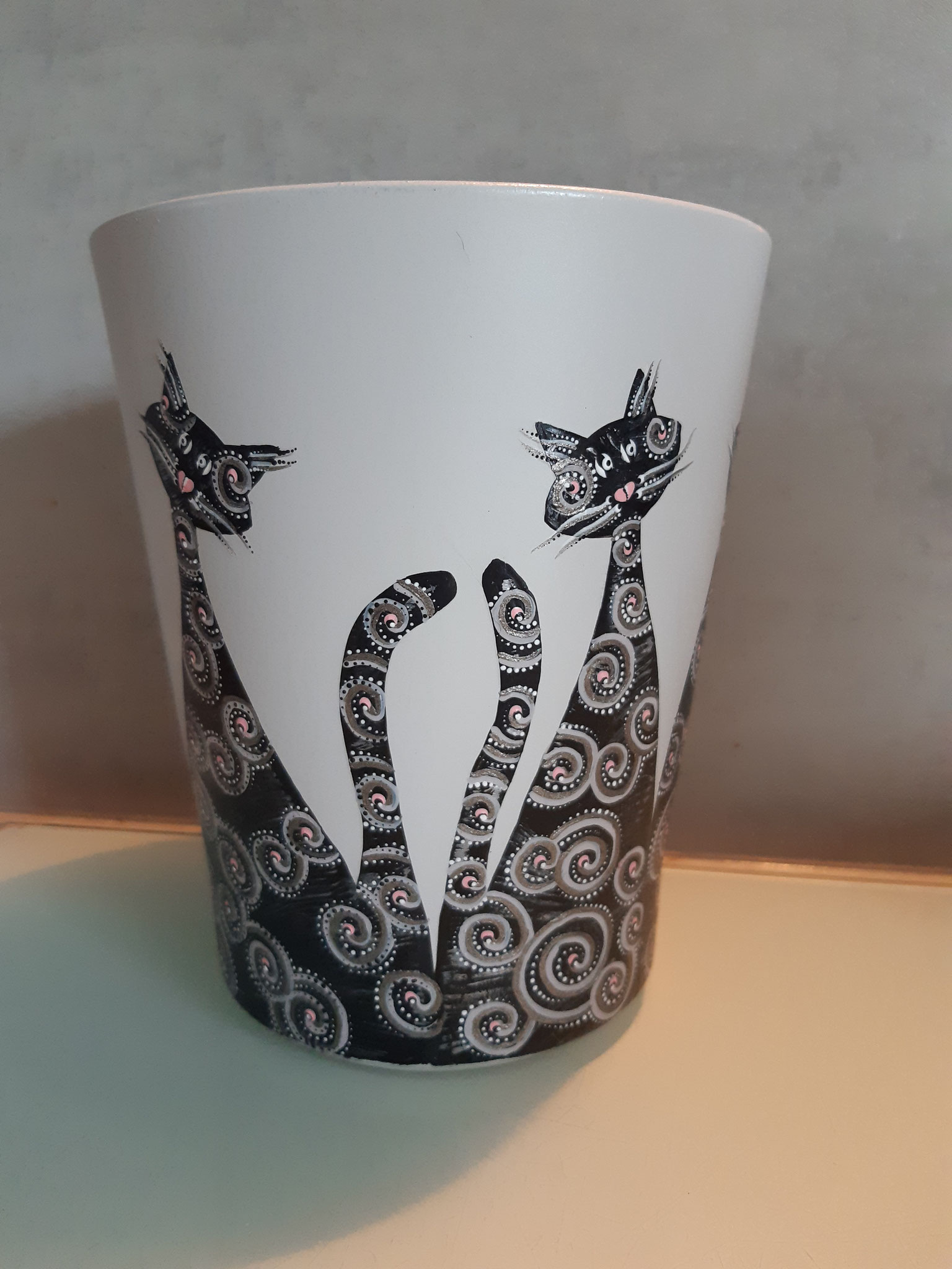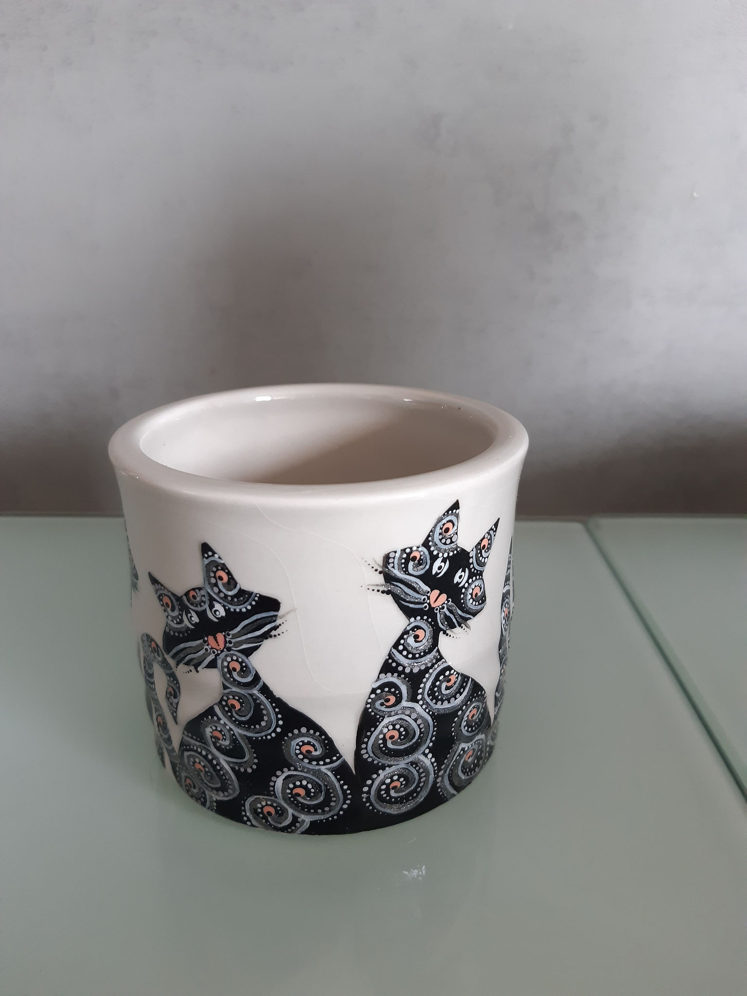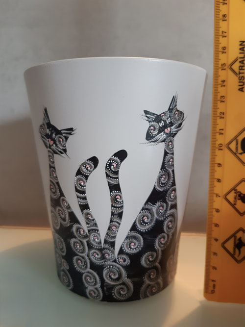 "Blumentopf marmoriert mit Katzen", gerade Form, Maße sh. Fotos, 30 € + Versand aus DE nach Absprache