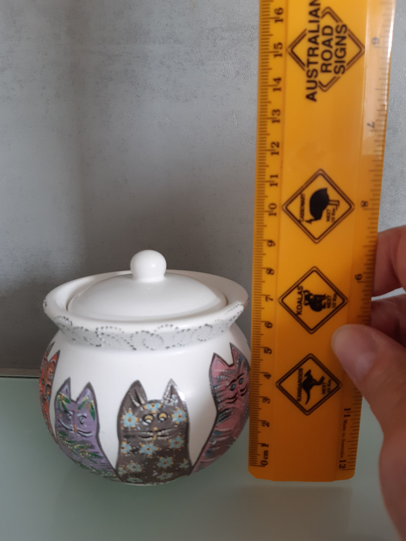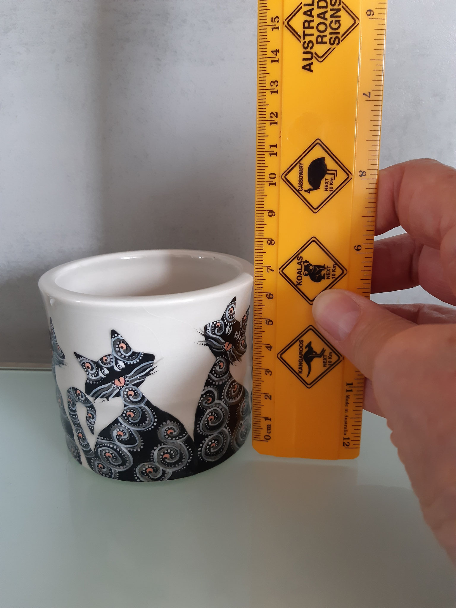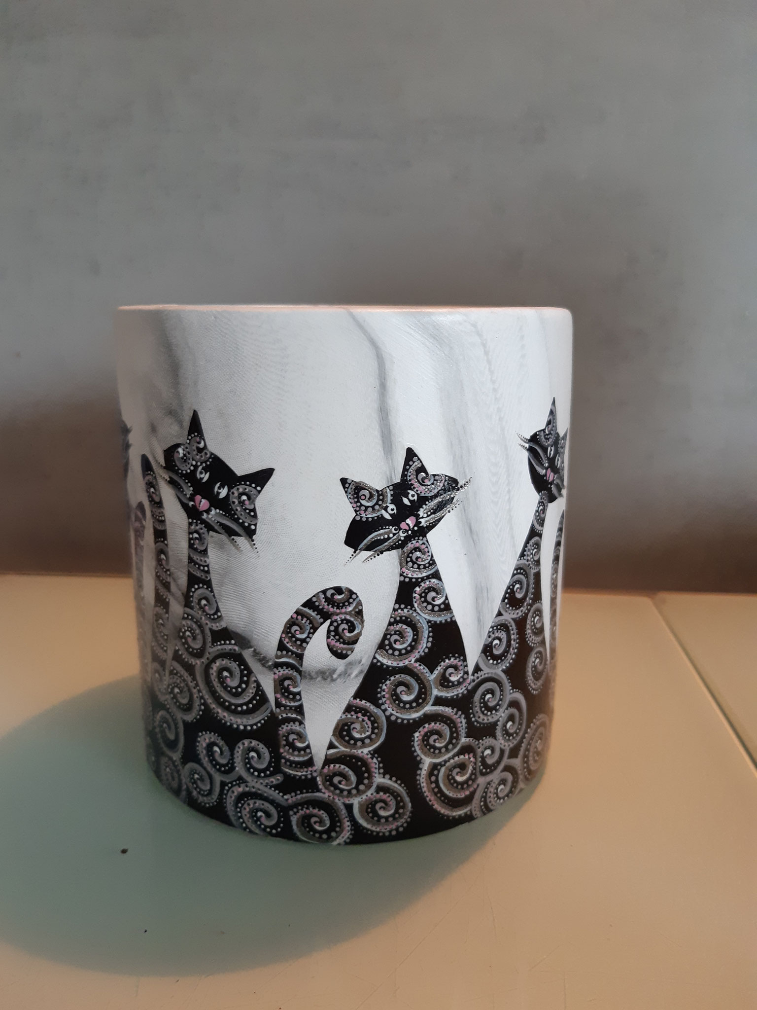 "Blumentopf marmoriert mit Katzen", gerade Form, Maße sh. Fotos, 30 € + Versand aus DE nach Absprache
