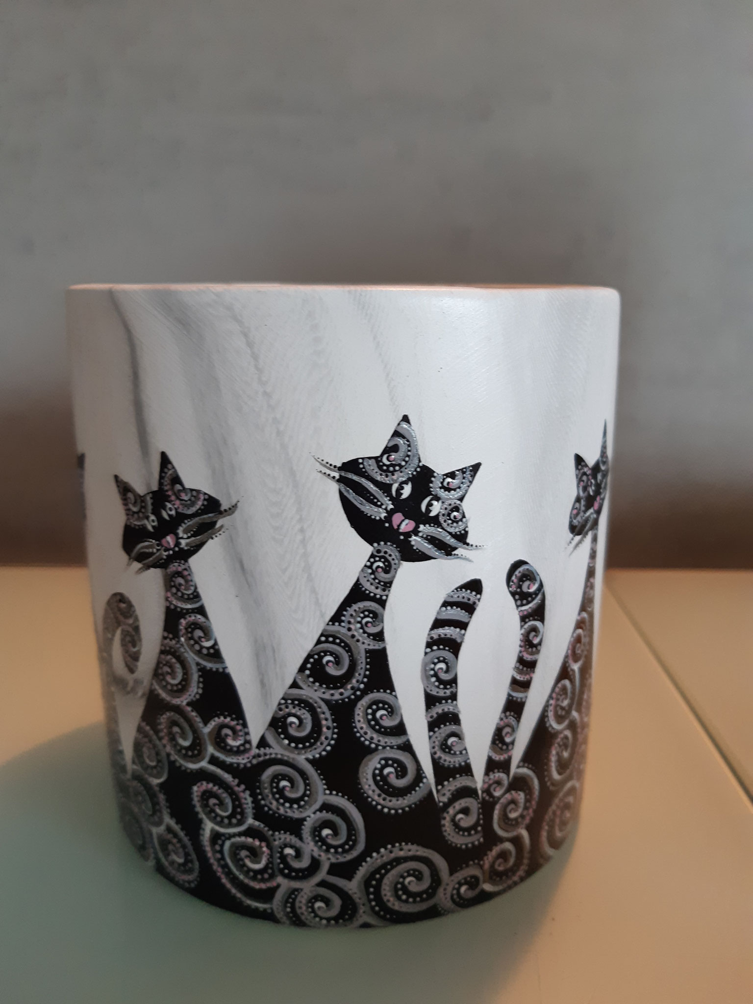 "Becher" für Stifte, Krimskrams" Acryl auf Bambus, 25 € + Versand 20 € nach DE und Österreich