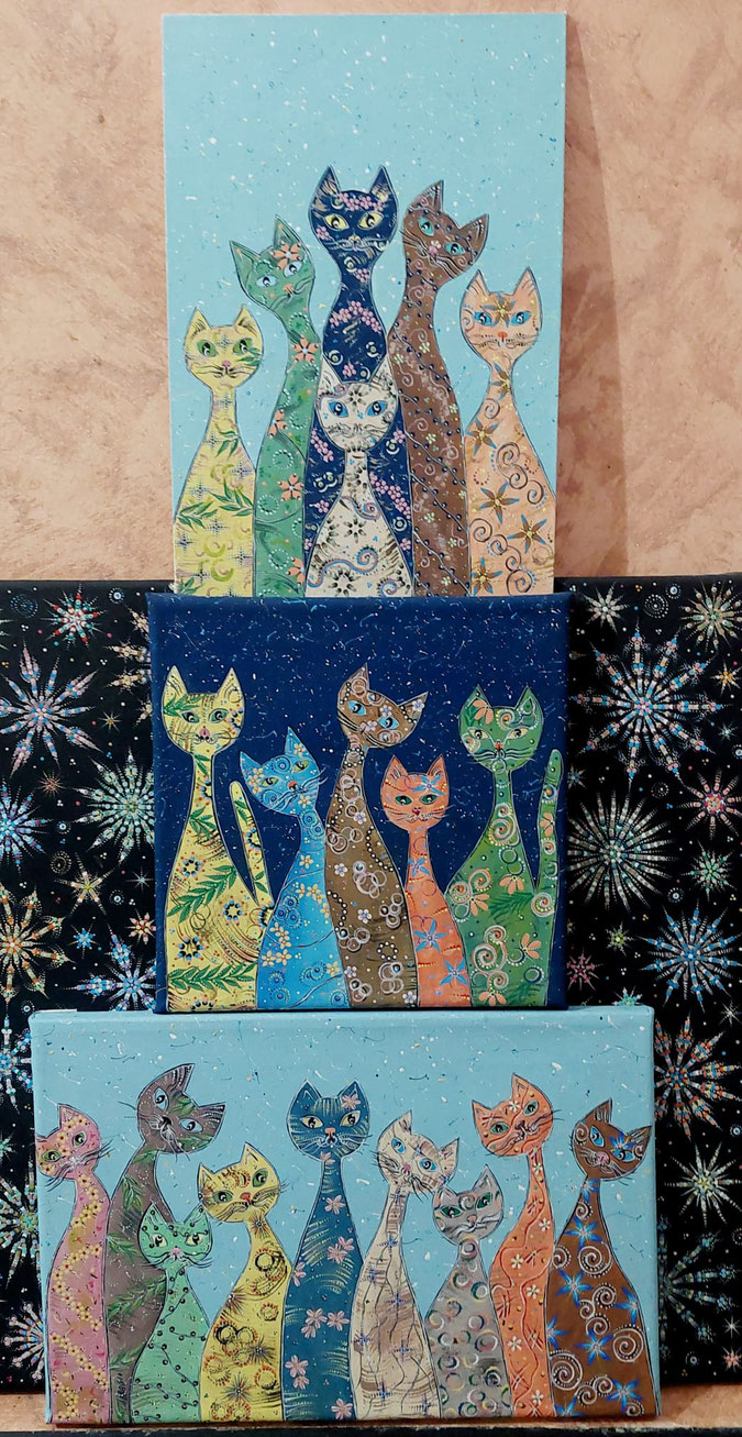 "Katzenbande" Acryl auf Canvas, 25 x 30 cm, 99 € + 20 € Versand nach DE und Österreich