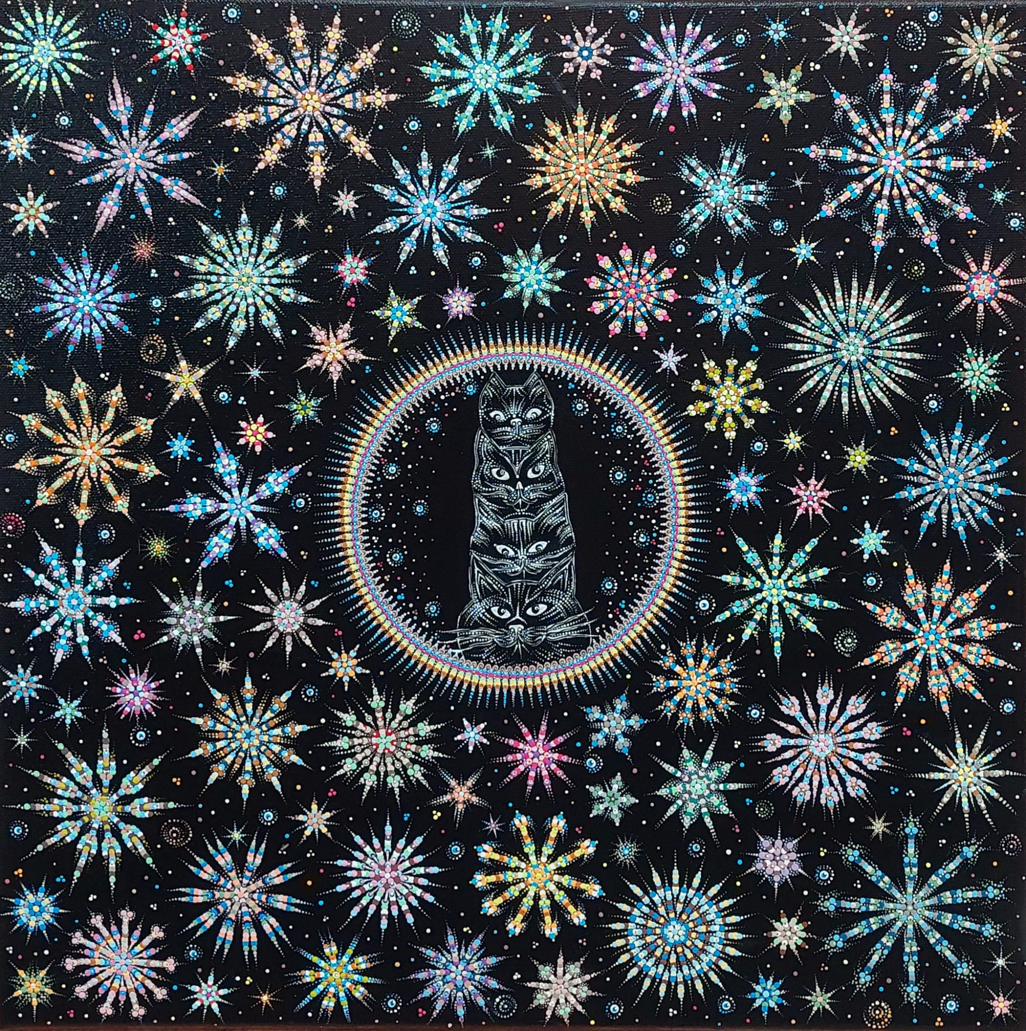 "Träumer", dot painting, Acryl auf Canvas, 40 x 40 cm, 199 € + 20 € versicherter Versand nach DE und Österreich, andere Länder bitte anfragen.