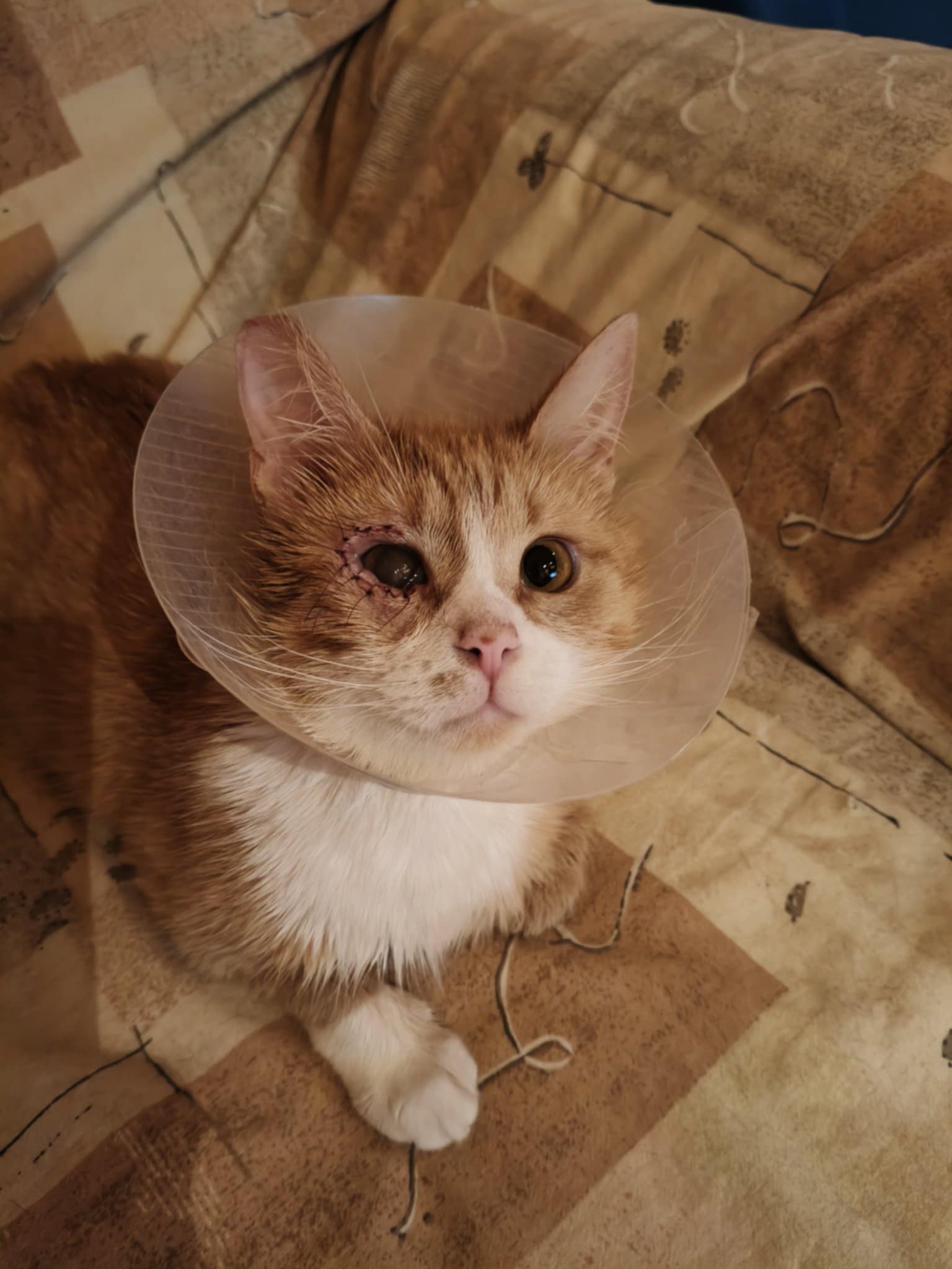 Wir werden wieder eure Hilfe brauchen. Wir stellen unsere neueste "Aquisition" vor. Die Katze ist weiblich und laut Gerüchten der Menschen in der Nachbarschaft, in der sie gefunden wurde, war es eine verlassene Hauskatze. Sie wurde in der Vierpfoten-Klinik kastriert, aber es gab Komplikationen nach der Kastration und wir mussten sie zum königlichen Tierarzt bringen, um Dr. Dodovski zu überprüfen. Das Kätzchen hatte noch ein Problem mit seinem rechten Auge auf der Straße. Beim Royal Vet wurde angenommen, dass sie einen Rucksack hatte, was zur Skalierung und Entfernung der Hornhaut führte. Da es keinen Augenarzt am Royal Vet gibt, mussten wir sie zu einem Spezialisten bringen - Dr. Borisov in Buxton. Er sagte, der Rucksack sei von einem umgedrehten Augenlid und müsste operiert werden. Wir fügen Fotos seiner Meinung bei sowie eine Urkunde zum Preis der Inspektion. Die OP selbst wird 300 BGN/150 € kosten, aber die Katze wird derzeit bei Royal Vet gegen Rhinotracheitis behandelt und muss vollständig gesund sein, um die Operation starten zu können. Für die Revision von Kastration, Aufenthalt und Behandlung haben wir bereits eine Rechnung von 600 BGN/300 € gesammelt, die Untersuchung bei Dr. Borisov betrug 90 BGN/45 € mit dem Rabatt. Uns ist noch unbekannt, wie viel Aufenthalt für Behandlung und Operation im Wert von 300 BGN/150 € bevorsteht. Tests und Impfstoffe werden benötigt. Bitte helft dem Kätzchen und uns bei diesen Kosten.