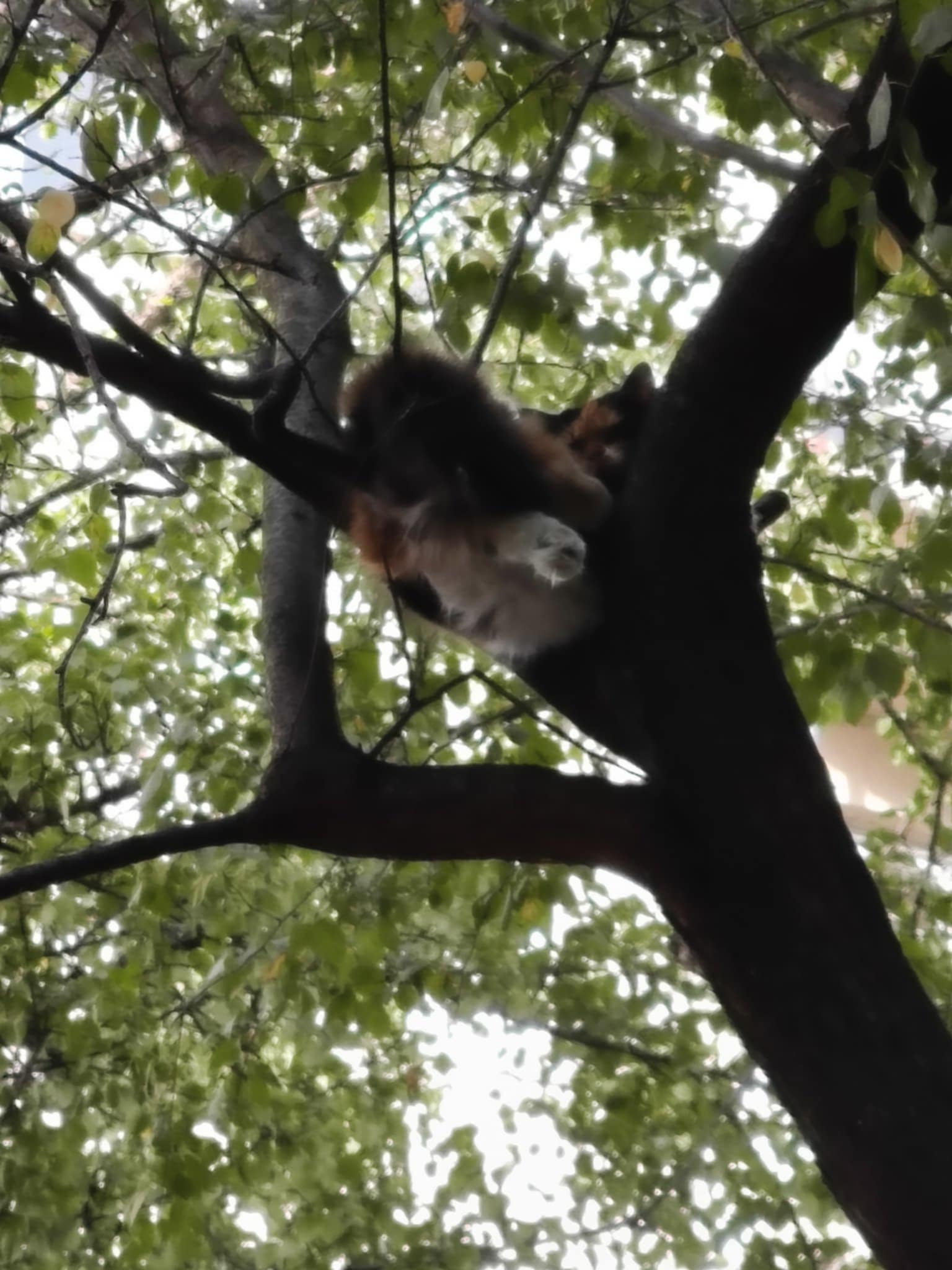 Wie ihr auf den Fotos sehen könnt, ist das Kätzchen mehr als offensichtlich eine Hauskatze: "Ich stehe seit einigen Tagen vor Stress und Angst in den Bäumen."