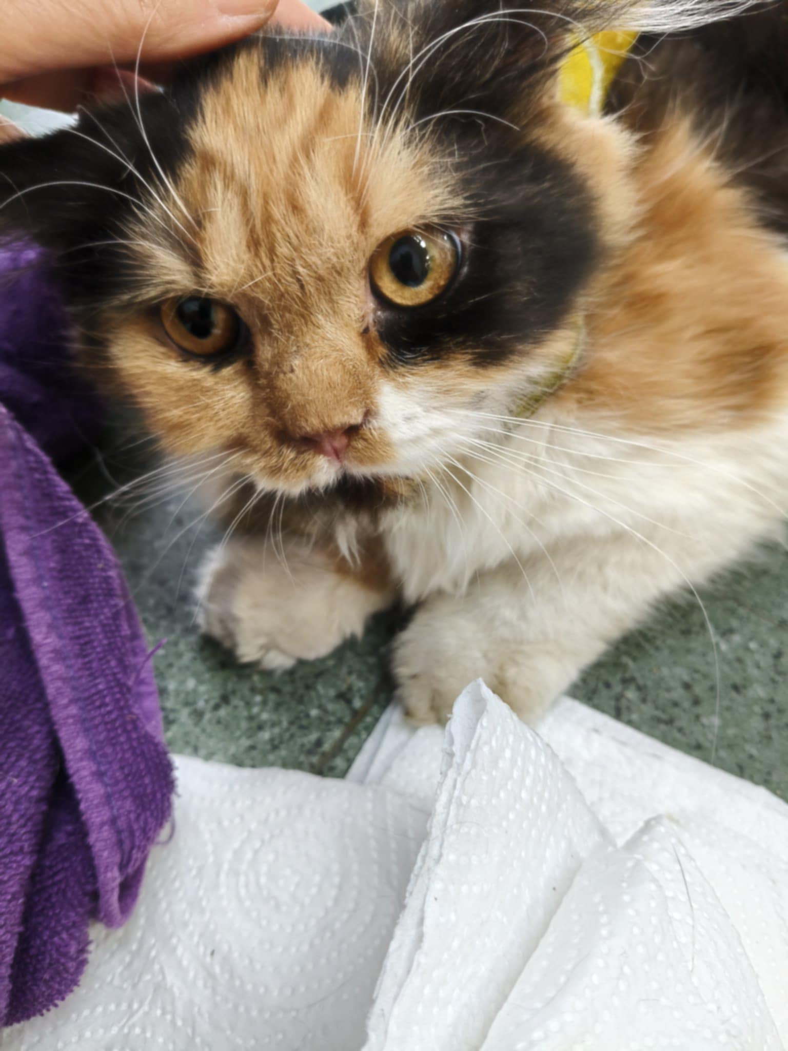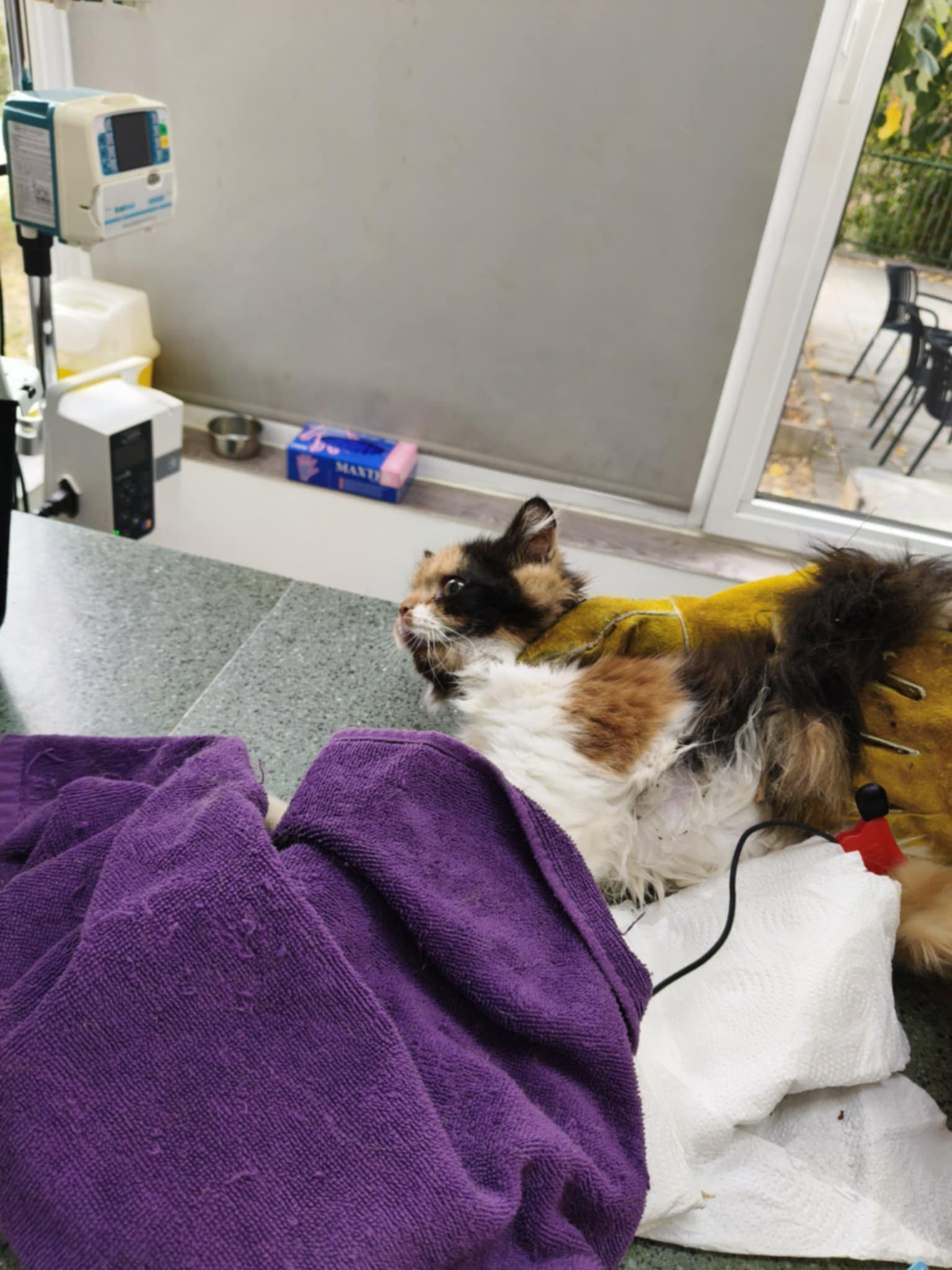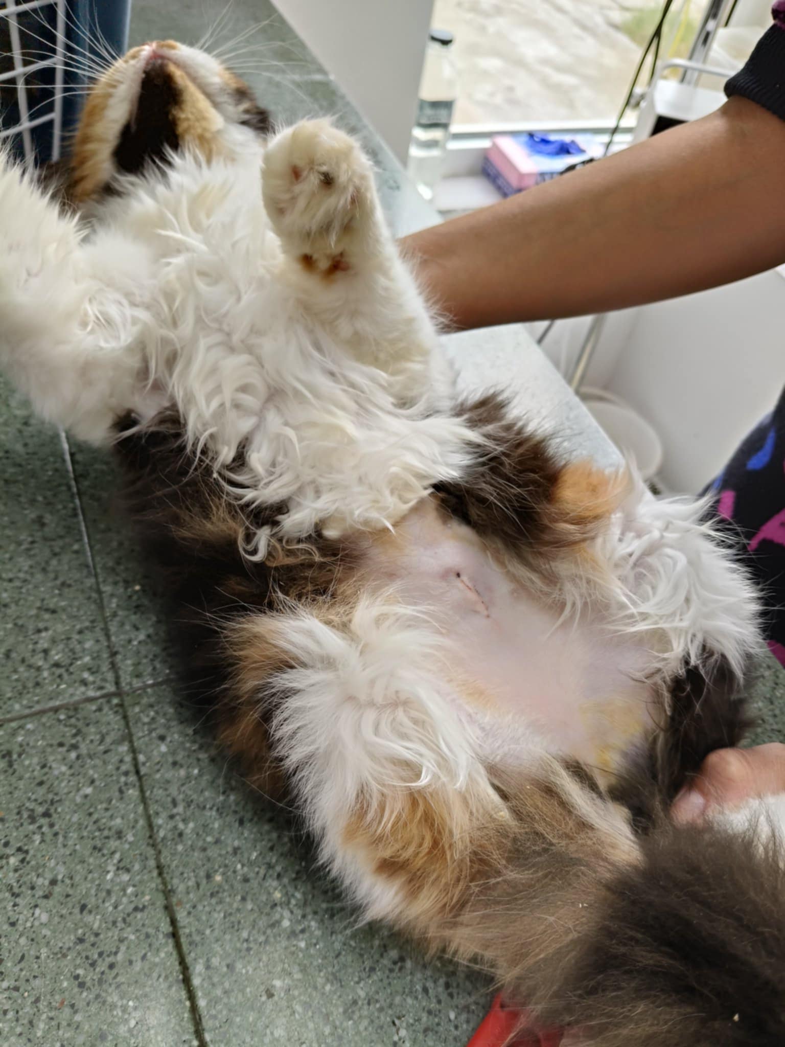 Angesichts der Zahl der Tiere, die wir im Laufe der Zeit aufgenommen haben, der fast fehlenden Adoptionen und Hilfe wollten wir wirklich keine Katze mehr freiwillig aufnehmen. Wir gaben nach, als wir sahen, dass sie (möglicherweise) von den anderen Katzen gebissen wurde, die das Revier bewachten. Untersuchungen in der Tierklinik haben Hängeleukozyten gezeigt. Behandlung im Royal Vet für mehr als 2 Wochen, bis sich die Dinge normalisiert und sie kastriert werden konnte.