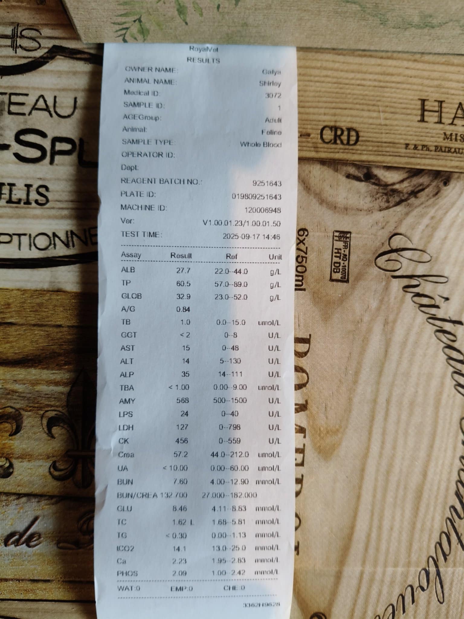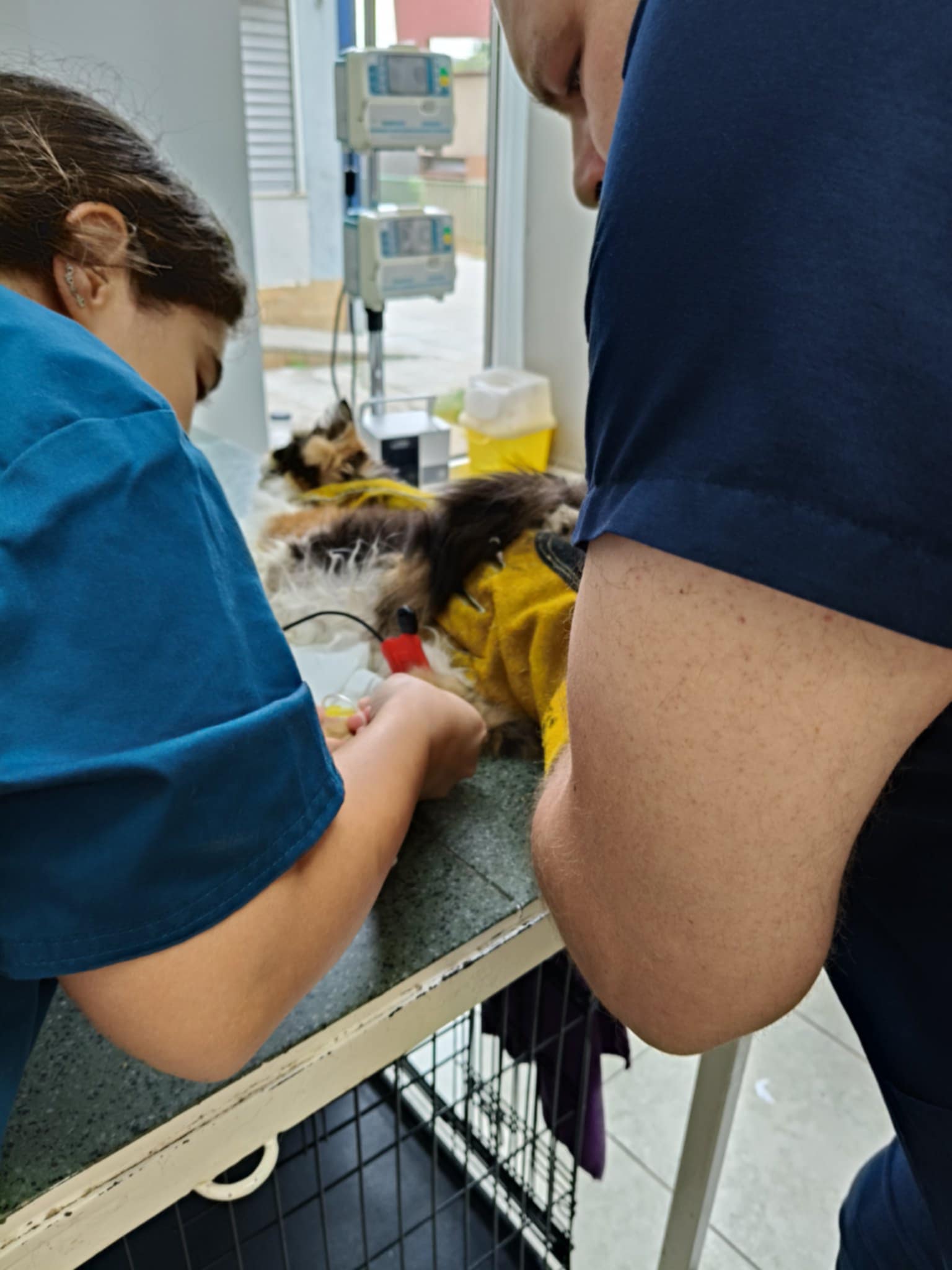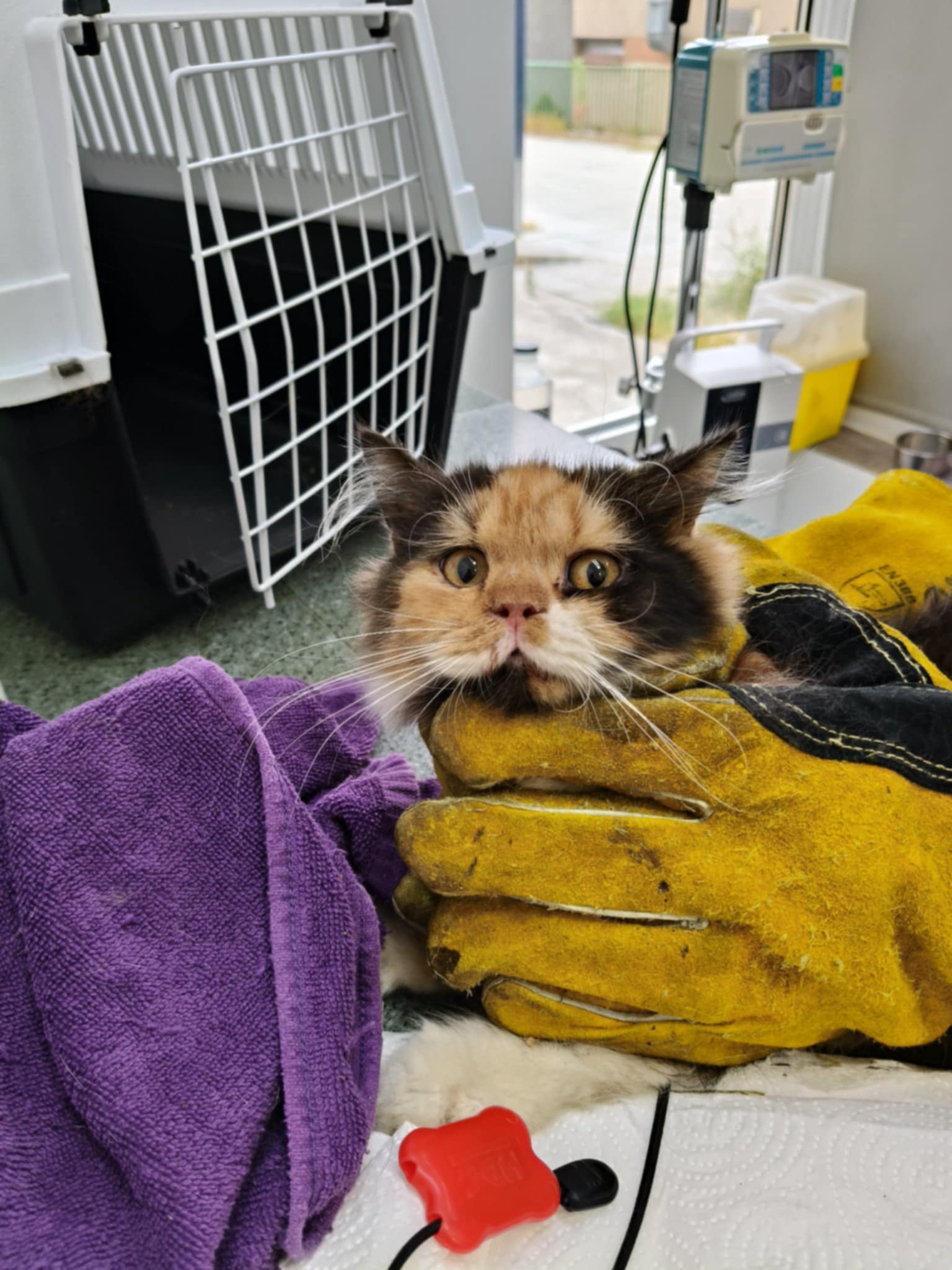 Angesichts der Zahl der Tiere, die wir im Laufe der Zeit aufgenommen haben, der fast fehlenden Adoptionen und Hilfe wollten wir wirklich keine Katze mehr freiwillig aufnehmen. Wir gaben nach, als wir sahen, dass sie (möglicherweise) von den anderen Katzen gebissen wurde, die das Revier bewachten. Untersuchungen in der Tierklinik haben Hängeleukozyten gezeigt. Behandlung im Royal Vet für mehr als 2 Wochen, bis sich die Dinge normalisiert und sie kastriert werden konnte.